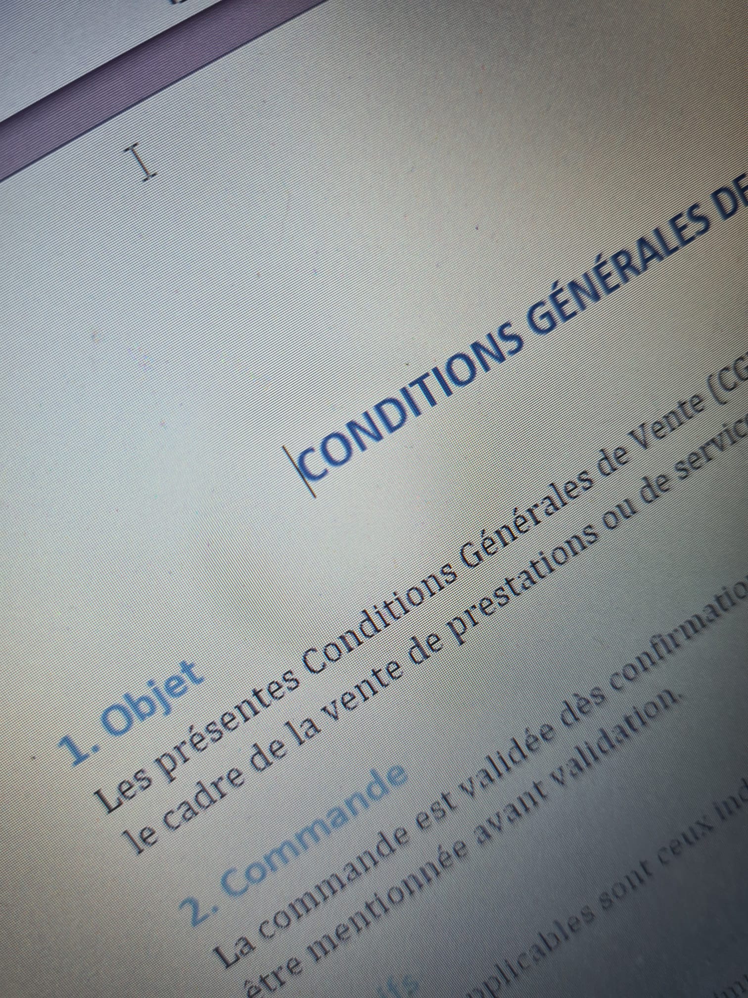 Ce document vous permet d’encadrer vos prestations, clarifier les règles avec vos clients et sécuriser vos échanges : modalités de paiement, responsabilités, délais, droit de rétractation, litiges…